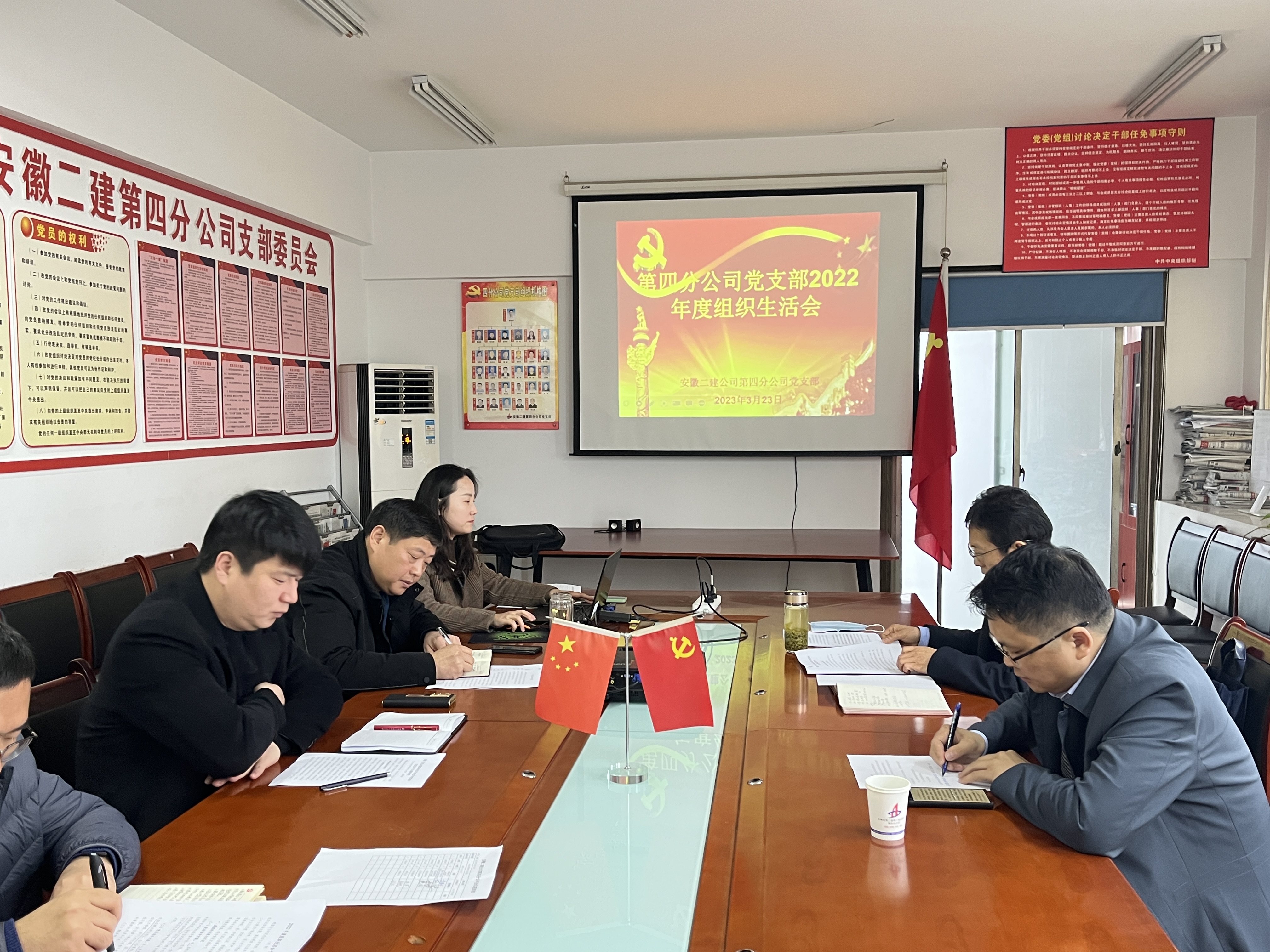 3月23日上午,按照公司黨委統(tǒng)一部署,第四分公司黨支部在會議室召開了2022年度支部組織生活會。公司黨委副書記、總經(jīng)理李建成到會指導(dǎo),分公司支委成員參會。