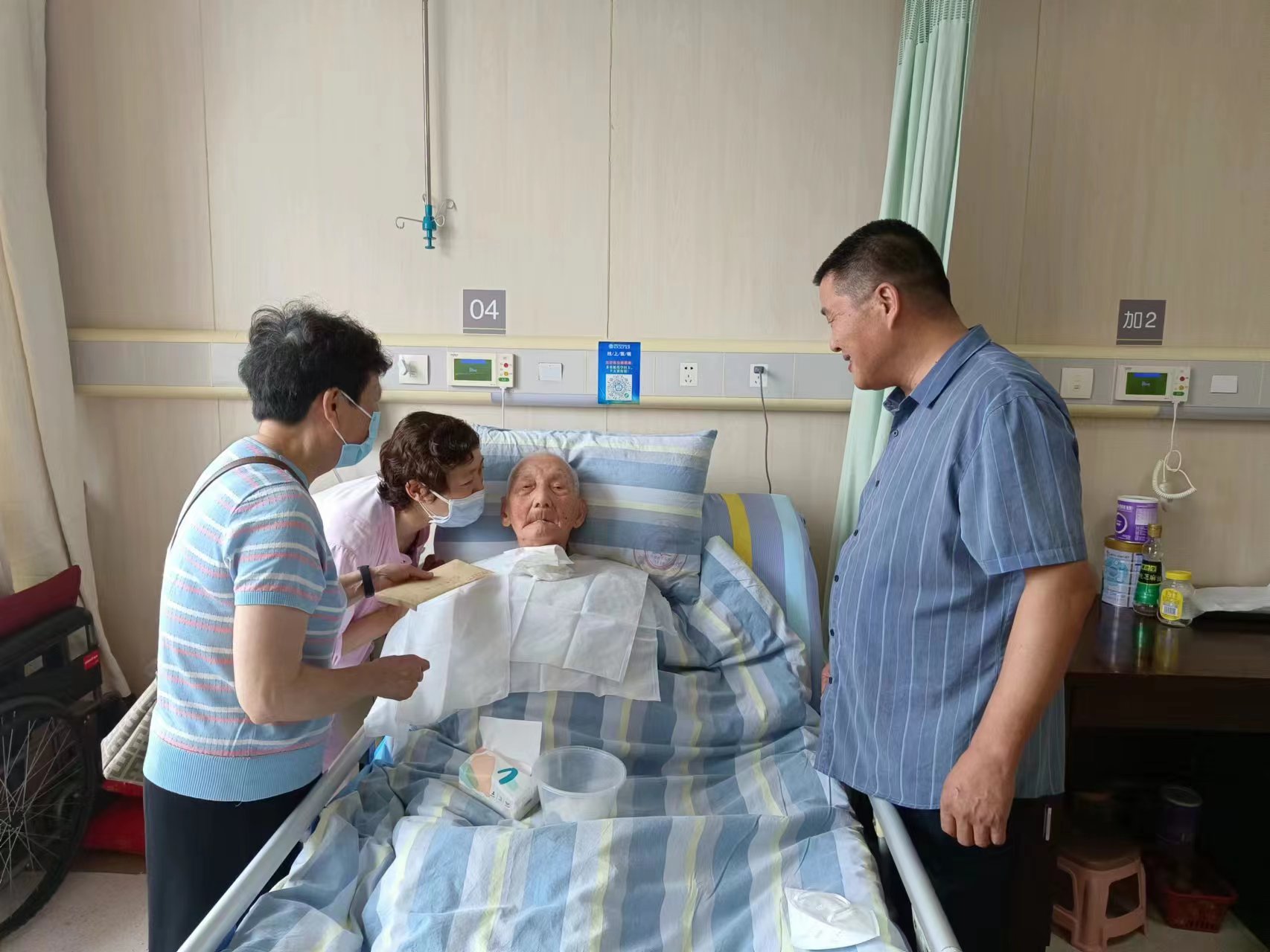 為慶祝中國共產黨成立102周年,6月30日上午,后勤綜合服務部主任錢能虎一行前往醫院看望慰問建工二建離休老干部李輝同志。