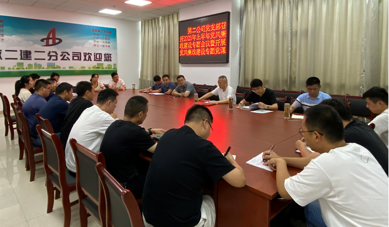 7月7日下午,第二公司黨支部召開2023年上半年黨風廉政建設專題會議暨開展黨風廉政建設專題黨課活動。會議由黨支部書記黃業云主持,第二公司黨支部在肥黨員、機關中層管理人員等參加會議。