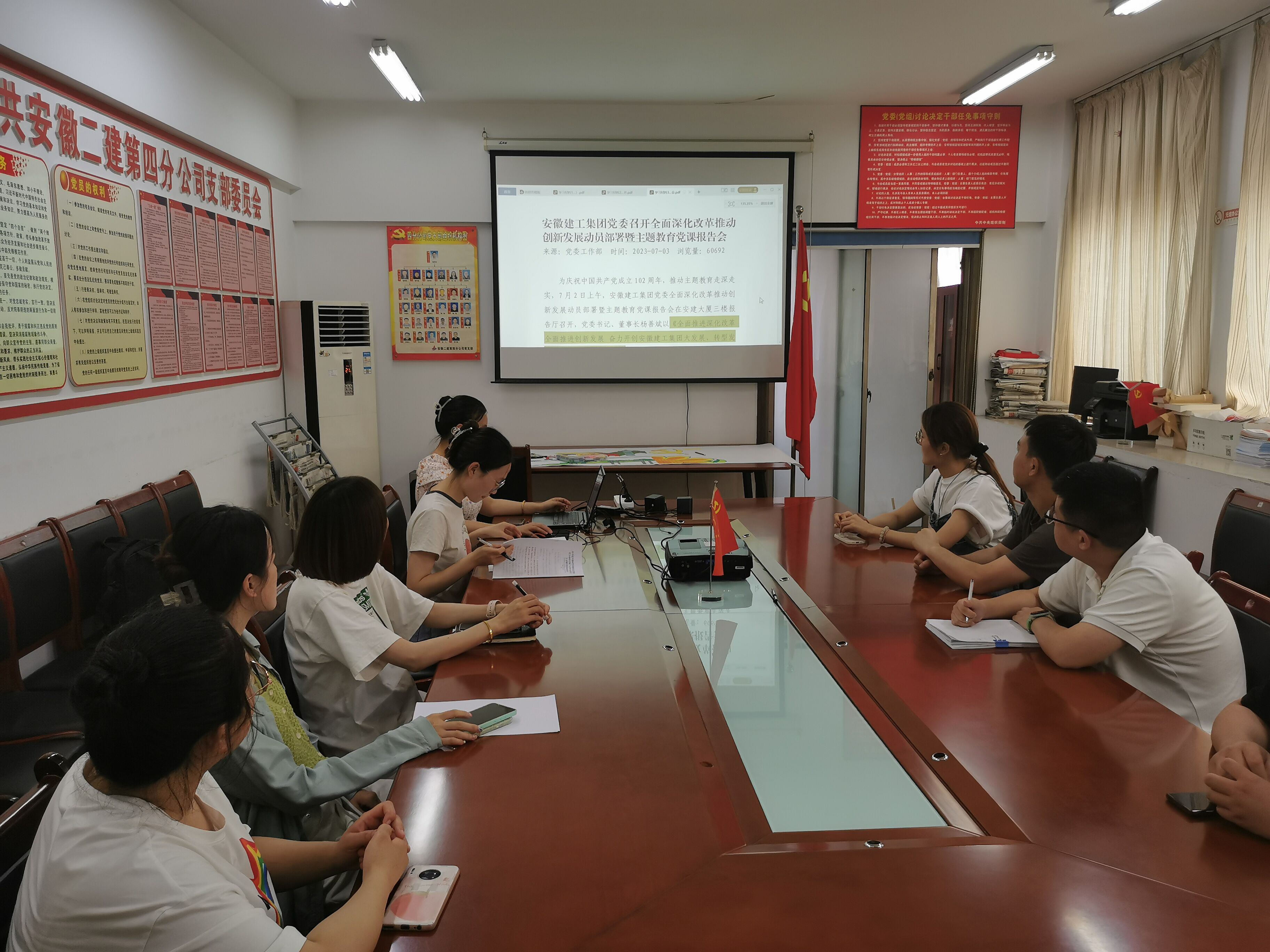 7月18日下午,建工二建第四公司團支部召開專題學習會,組織團員青年深入開展學習貫徹集團全面深化改革推動創(chuàng)新發(fā)展動員部署暨主題教育黨課報告會會議精神。