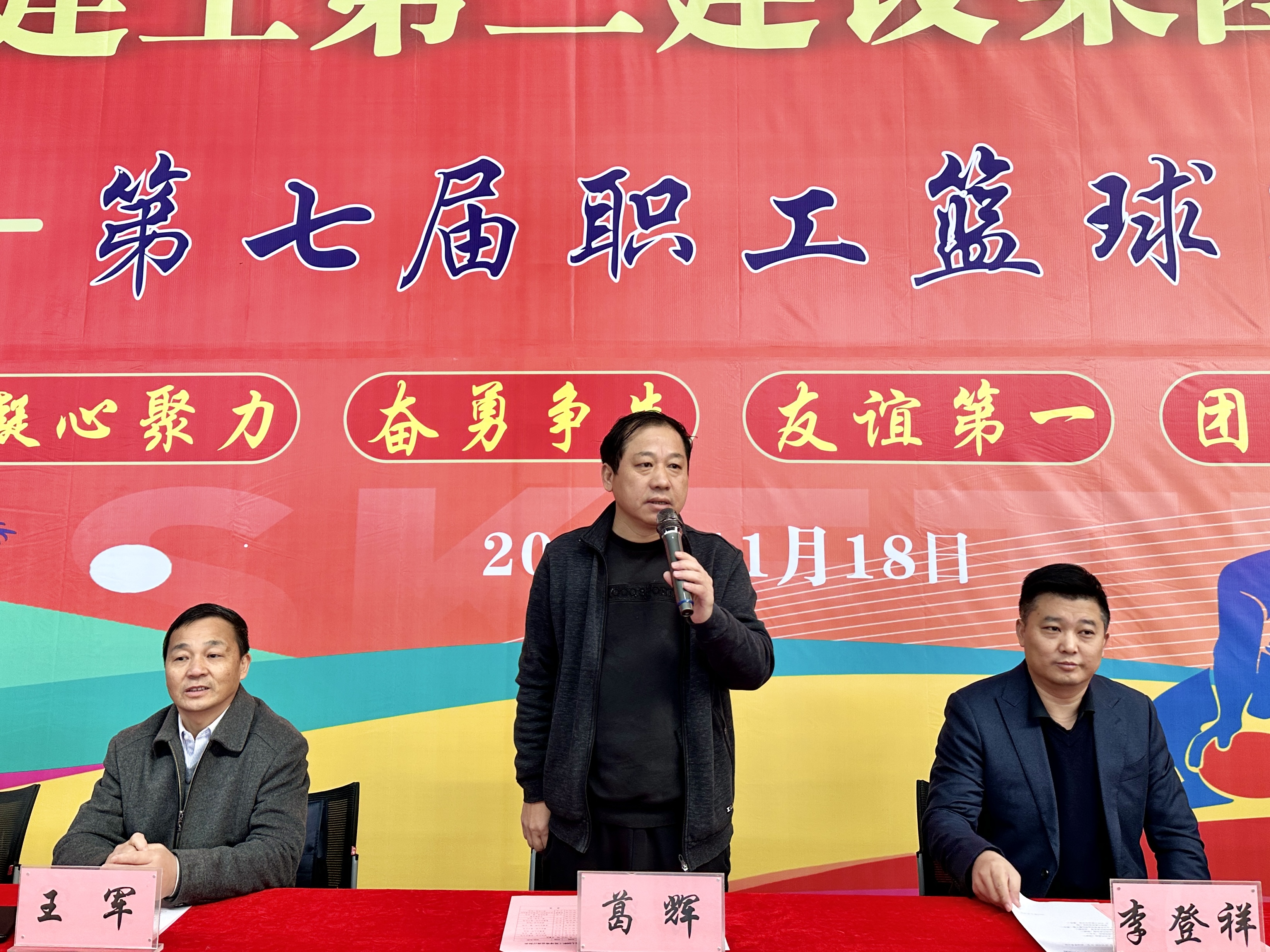 11月18日至19日,建工二建第七屆職工籃球賽在合肥隆重舉行,比賽歷時兩天。公司黨委副書記、總經理葛輝出席開幕式宣布本屆籃球賽開幕,并為首場比賽開球!公司黨委副書記、副總經理李登祥致開幕辭。