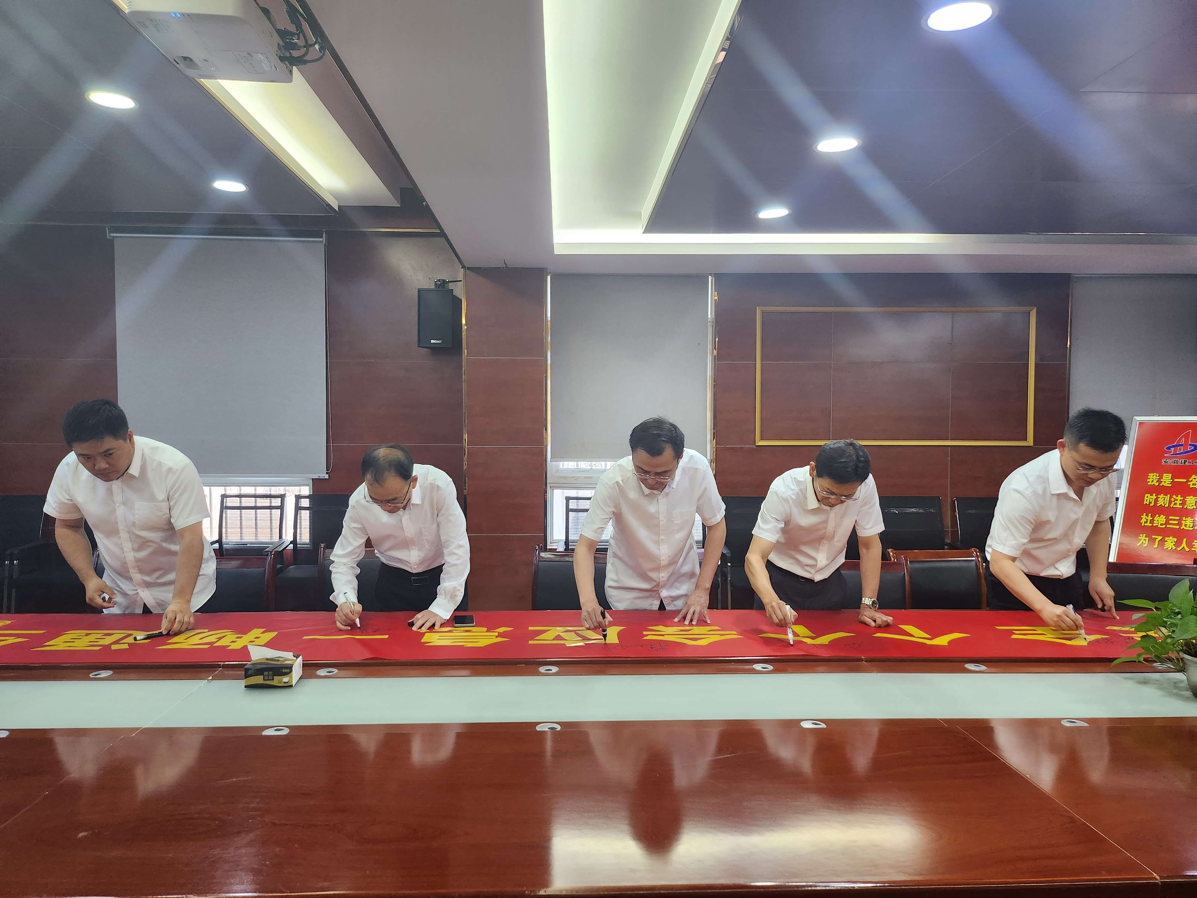 “我是一名安全建工人,我鄭重宣誓:時刻注意安全,遵守安全法規(guī);履行安全職責,提高安全技能;杜絕三違現(xiàn)象,保證四不傷害;強化紅線意識,促進安全發(fā)展;為了家人幸福、企業(yè)發(fā)展,誓做建工安全人!”伴隨著一陣陣響亮的宣誓聲,聯(lián)合簽名、觀看安全生產月主題宣傳片及公益廣告等,第一分公司2024年“安全生產月”正式拉開帷幕。