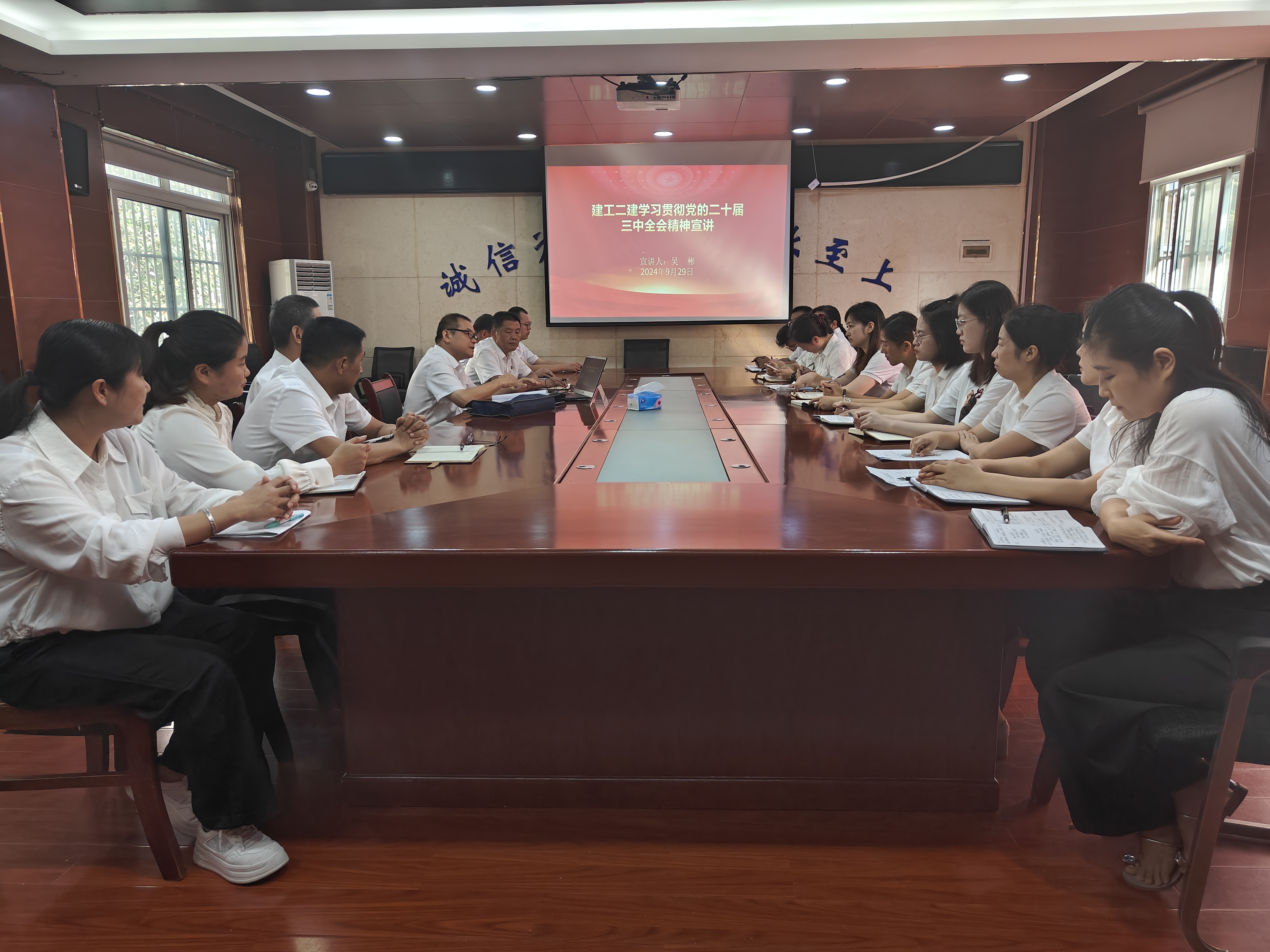 為深入學習貫徹黨的二十屆三中全會精神,9月29日上午,建工二建總工程師吳彬赴人才管理中心開展黨的二十屆三中全會精神的專題宣講,人才管理中心全體職工參會。