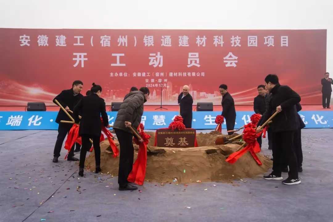 安徽宿州經濟開發區黨工委委員、管委會副主任蔣永久,宿州市城市建設投資集團(控股)有限公司黨委委員、財務總監馬勇,建材科技有限公司黨委副書記、董事、副總經理李鑫,黨委委員、副總經理、工會主席邵佳,及相關單位人員、宿州建材全體員工參加開工儀式。