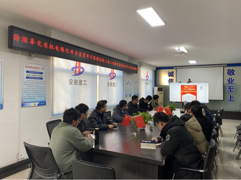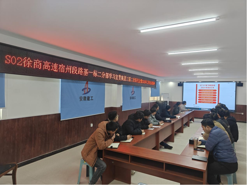 近日 ,安徽建工建設投資發(fā)展有限公司組織徐淮阜交安機電綠化項目部和S02徐商高速宿州段一標二分部項目學習宣貫集團三屆二次職代會暨2025年工作會議精神,確保會議精神在項目一線落地生根。