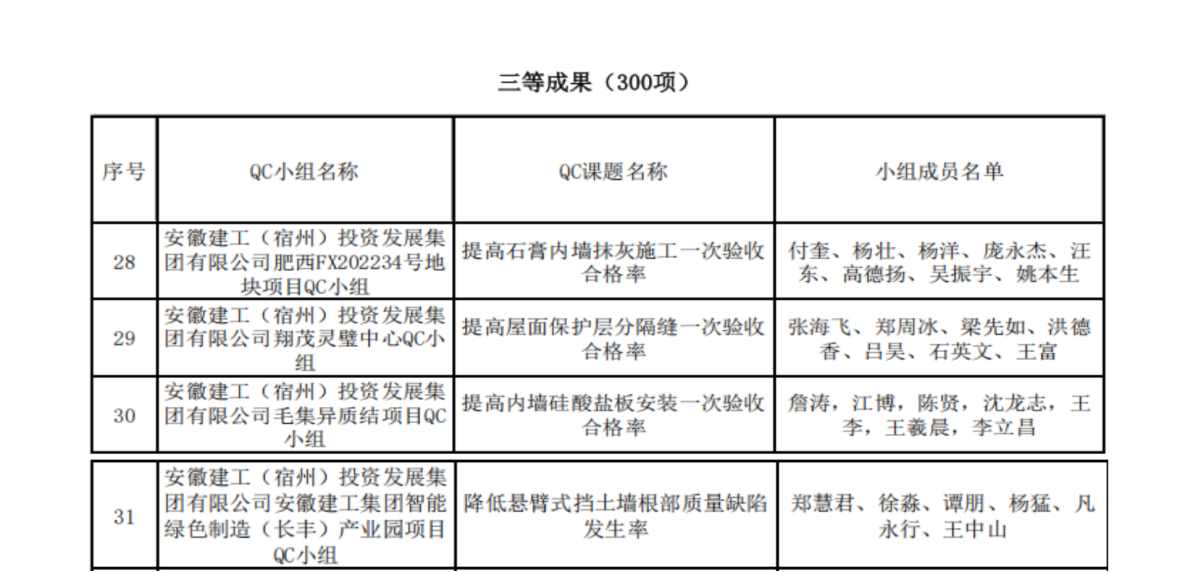 近日,安徽省建筑工程質(zhì)量與安全協(xié)會(huì)公布了2025年安徽省工程建設(shè)QC小組成果大賽獲獎(jiǎng)名單,宿州投發(fā)在本次大賽中脫穎而出,共獲得一等成果1項(xiàng)、二等成果7項(xiàng)、三等成果4項(xiàng)。此次獲評(píng)多個(gè)獎(jiǎng)項(xiàng),充分展現(xiàn)了公司在工程建設(shè)領(lǐng)域的創(chuàng)新實(shí)力以及技術(shù)水平。