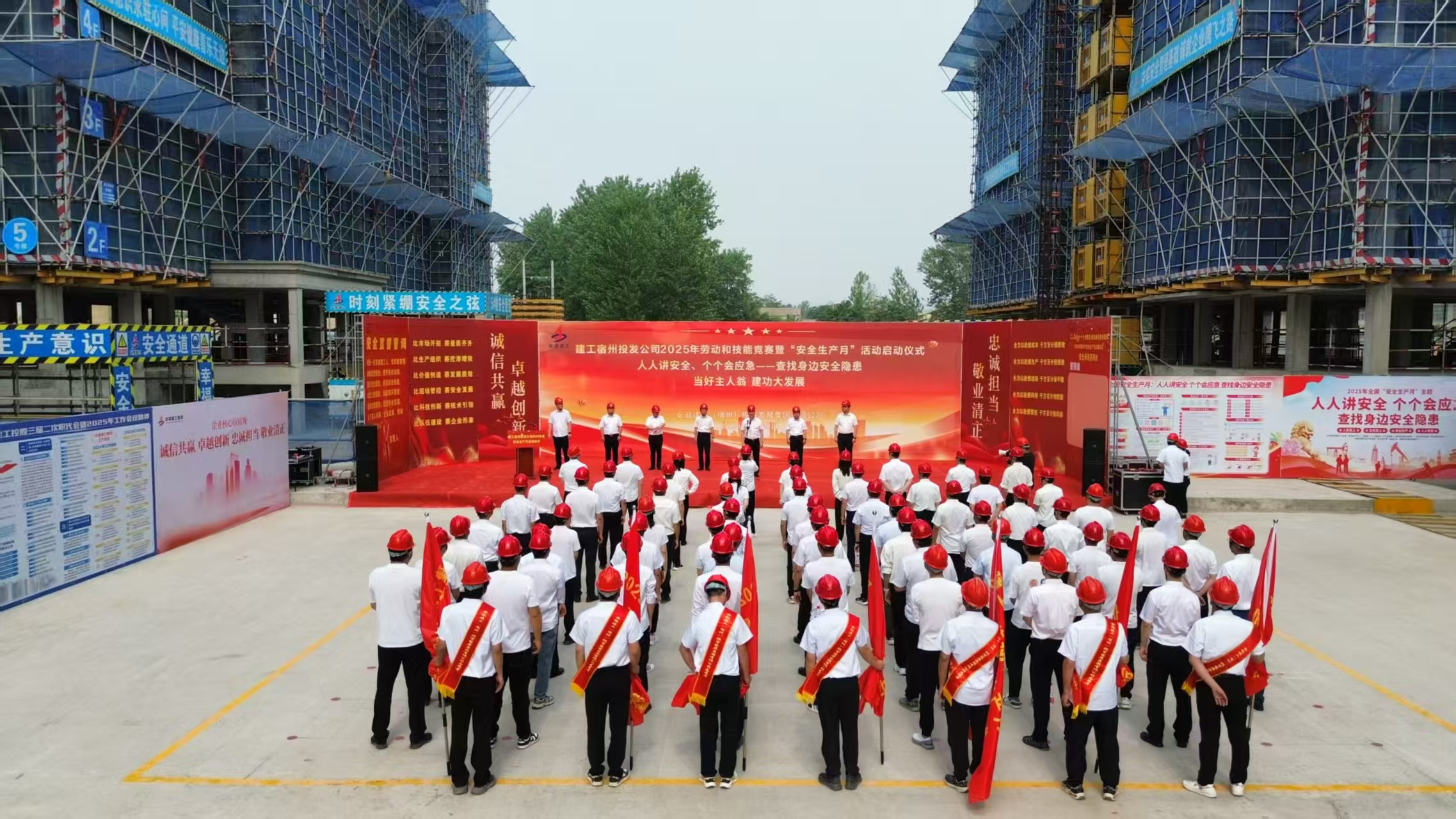 6月10日上午,建工宿州投發(fā)公司在宿徐園區(qū)城鎮(zhèn)一體化項(xiàng)目舉行2025年勞動(dòng)和技能競(jìng)賽暨“安全生產(chǎn)月”活動(dòng)啟動(dòng)儀式。建工股份黨委委員、副總經(jīng)理,建工宿州投發(fā)公司黨委書(shū)記、董事長(zhǎng)朱忠明出席儀式并作動(dòng)員講話,對(duì)2025年勞動(dòng)和技能競(jìng)賽及“安全生產(chǎn)月”重點(diǎn)工作進(jìn)行部署。宿州投發(fā)黨委副書(shū)記、總經(jīng)理周國(guó)林宣讀勞動(dòng)競(jìng)賽和“安全生產(chǎn)月”活動(dòng)實(shí)施方案。