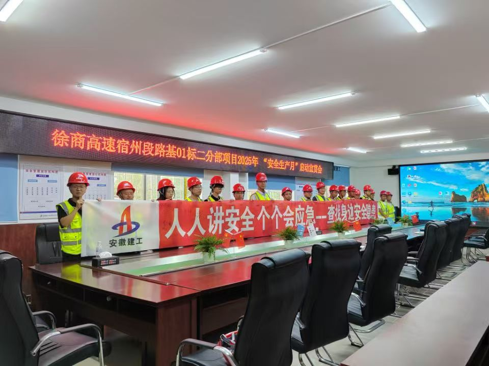 為進一步強化安全生產意識,落實安全生產責任,確保工程建設期間的人員安全和工程質量,近日,S02徐商高速宿州段路基一標二分部在項目駐地舉行了2025年“安全生產月”啟動儀式。