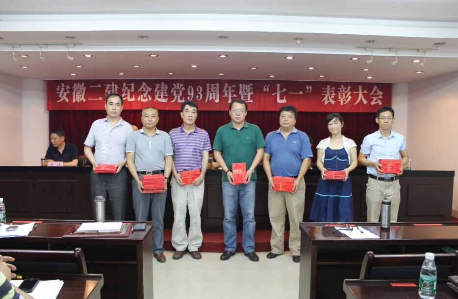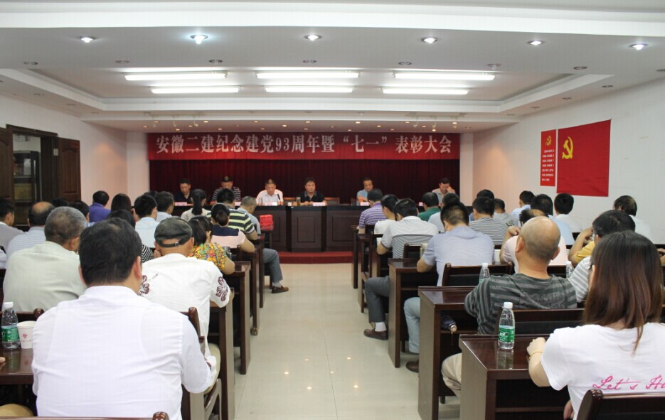 7月1日下午,安徽二建黨委在三樓會議室召開了紀(jì)念建黨93周年暨“七一”表彰會。公司兩級領(lǐng)導(dǎo)班子成員、受表彰的先進基層黨組織代表、優(yōu)秀共產(chǎn)黨員、優(yōu)秀共產(chǎn)黨員示范崗、部分在崗黨員和“我與安徽建工夢”征文獲獎代表共70多人參加會議。