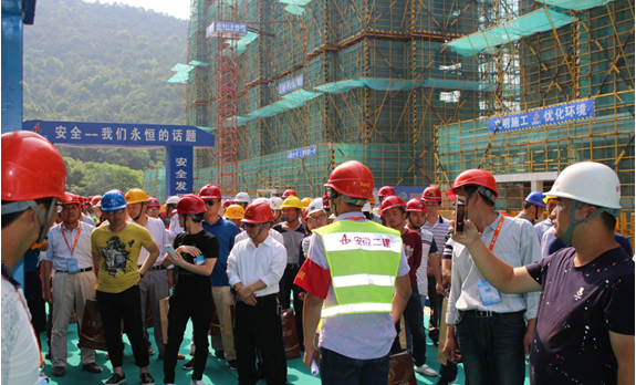 5月27日上午,由宿松縣住建局、安徽二建公司、安建地產宿松有限公司聯合舉辦的“建筑施工安全質量標準化現場觀摩會”在安建·龍溪觀邸項目舉行。宿松縣住建局局長余勁松、副局長劉勝新、二建公司安全總監曹建及宿松縣建筑行業單位近200人參加了此次觀摩會,重點對該項目質量安全標準化工地、綠色文明施工、科學化施工建造、人性化服務等方面進行了全方位的觀摩學習。