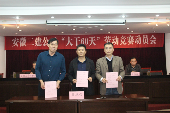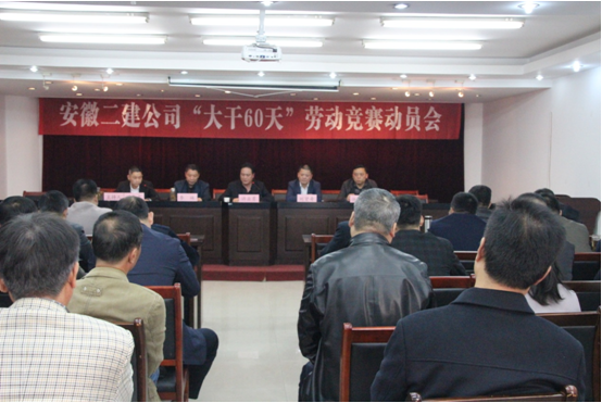 2017年已漸入歲末。為更好地全面完成年初公司既定各項(xiàng)經(jīng)濟(jì)技術(shù)目標(biāo)任務(wù),在項(xiàng)目上掀起大干熱潮,安徽二建公司于11月6日下午,在原辦公樓三樓會(huì)議室召開“大干60天”勞動(dòng)競(jìng)賽動(dòng)員會(huì)。公司領(lǐng)導(dǎo)及機(jī)關(guān)職能部門負(fù)責(zé)人、所屬各基層單位黨政一把手、公司在建20個(gè)自營(yíng)項(xiàng)目負(fù)責(zé)人等60余人參加動(dòng)員會(huì)。