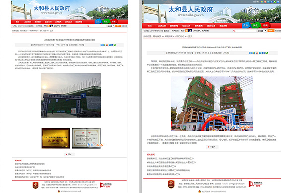 安徽二建憑借精湛的施工工藝,不怕艱苦的施工精神,獲得當地政府一致好評。2017年6月27日至30日太和發藝標準廠房二期榮獲“2017年度全國工程建設優秀QC成果二等獎”,當地政府網站進行報道并指出在太和縣工程建設領域首次獲得該獎項。