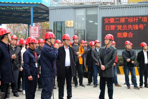 12月1日,安徽二建阜陽大學城•紅街項目、安建楓林源筑項目施工現場舉行了在建項目現場觀摩會。活動旨在深入推進公司基礎管理深化年活動,充分發揮基層黨組織推動發展、服務職工、凝聚人心、促進和諧作用,使黨建工作更好地融入企業的生產經營管理之中,進一步提高施工現場文明生產施工和安全質量管理水平。公司黨委書記劉賢奇、副總經理葉和永出席,所屬分公司黨支部書記、分管安全生產副經理及安全科、綜合辦負責人、全體自營項目項目經理、安全負責人、項目黨支部負責人參加觀摩會。