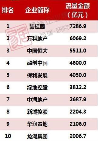 克爾瑞的數據,碧桂園7287億元蟬聯(lián)第一,萬科6069億元重回行業(yè)第二,恒大5511億元的位居第三。