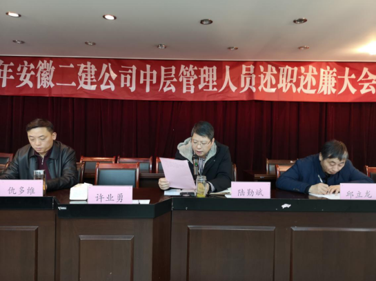 為認真總結2019年度公司各部門和分公司的主要工作,進一步強化中層管理人員的責任意識,提高各部門和分公司工作能力,打造一支高素質的管理團隊,2020年1月6日,公司召開2019年度中層管理人員述職述廉大會。公司總經理陸勤斌及領導班子成員、中層副職以上人員與會。大會由黨委副書記、紀委書記仇多維主持。