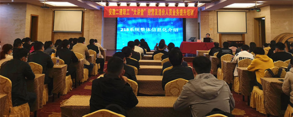 為提高公司經營及造價人員的業務技能和知識水平,提升所屬各單位的成本分析、投標報價、項目核算、系統操作等各項工作能力,安徽二建經營公司、信息化管理部、人力資源部等部門于2020年4月9日在隆崗大酒店三樓會議室聯合開展業務培訓,公司領導及相關部門,分公司經營副經理,所有經營人員及造價核算人員等100余人參與了培訓。