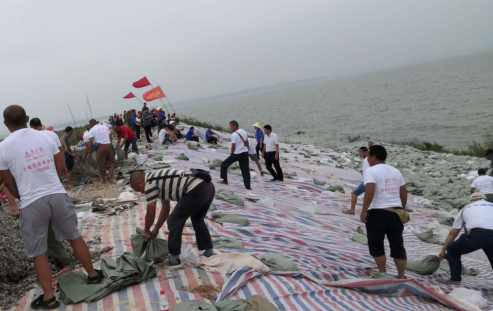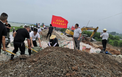 面對突發災情,該縣住建局在收到富河下游防汛搶險工作的緊急通知后,立即組織防汛搶險突擊隊。為積極響應縣委、縣政府關于開展防汛救災工作的號召,7月16日上午,安徽二建湖北陽新項目部立即啟動防汛應急預案,積極發揮國企責任擔當,統籌力量和資源,組織項目部十余人立即加入抗洪搶險工作隊,全力參與到抗洪搶險中,與當地民眾并肩戰斗,眾志成城、全力以赴、筑牢防線。在項目經理趙東民的帶領下,前往陽新縣寶塔湖明港(網湖隔堤)加固河堤,有序開展防洪抗災搶險各項工作,確保人民群眾生命財產安全。