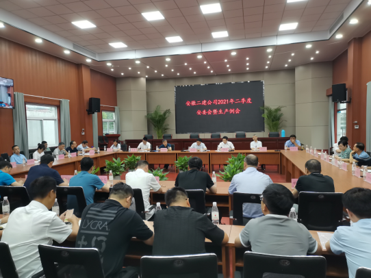 7月8日下午,安徽二建公司召開了二季度安委會暨生產例會,會議由副總經理葉和永主持,公司領導、機關各部門負責人;各土建單位負責人、安全生產分管領導、決算分管領導及安全、工管科室負責人;機械和方圓公司負責人、安全分管領導;直屬項目、宿州PPP項目負責人參加了會議。