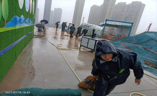 截至2021年7月20日17時許,大雨依舊沒有停歇,但項目人員沒有絲毫緊張,因為我們做好了充足的準(zhǔn)備,防汛工作段段有人管、層層有人抓、工作有檢查、任務(wù)有安排,全力作答防汛“考卷”,保障公司財產(chǎn)和項目參戰(zhàn)人員的安全。