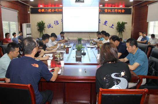 8月10日上午,安徽二建公司召開安全、生產、決算、債權工作例會,會議由公司副總經理葉和永主持,公司總經理李建成、財務總監劉薇、副總經理費勤波出席會議。相關部門負責人、所屬各單位負責人參加會議。