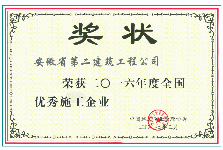全國優(yōu)秀施工企業(yè)(2016年度)