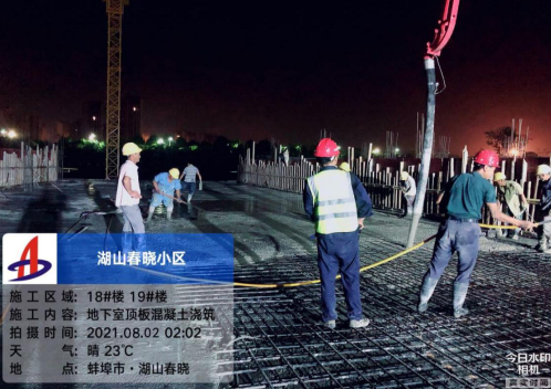 蚌埠地區因受臺風影響,連續的暴雨天氣對施工造成很大影響,項目部立即組織搶險小組,對基坑、地下室等部位加強排水和安全檢查,保障施工進度不受影響。暴雨過后,蚌埠迎來了炎熱的高溫天氣,項目部調整作息時間,認真落實防暑降溫各項保障工作,利用早晚時間段進行搶工,使項目的大干氛圍不因特殊天氣有絲毫懈怠。項目部嚴格按照施工進度計劃組織生產,在抓好安全管控、質量管理、疫情防控的前提下,抓住當前有利天氣,搶抓施工黃金期,合理安排人材機的投入,推動各道工序穿插進行,不斷推進施工進度,不斷提高整體施工效率,以施工進度為主線,以爭創產值為目標,積極調動項目管理人員及分包隊伍的積極性,全體員工以高度的責任感和積極向上的精神風貌,全面掀起了勞動競賽大干熱潮,施工現場呈現一片熱火朝天的繁忙景象。