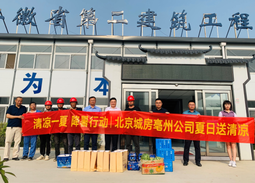 艷陽高照,晴空萬里。6月11日,北京城房亳州負責(zé)人刁東良一行蒞臨安徽二建公司亳州濱江壹號項目部送清涼。