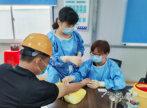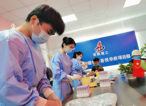 根據《安徽二建公司“我為群眾辦實事”實踐活動方案》文件精神,6月3日上午,銅陵吾悅華府項目部特邀銅陵市疾控中心人員來項目,為一線工人進行免費體檢。