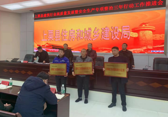 3月9日上午,江西上栗頂峰首府項目在上栗縣“建筑行業(yè)高質量發(fā)展暨建筑施工安全生產專項整治三年行動工作推進會”上被授予2020年度上栗縣“建筑工程質量安全標準化示范工地”稱號。