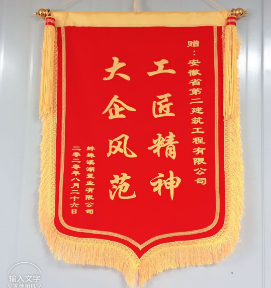日前,石榴集團(tuán)蚌埠溪湖置業(yè)有限公司將“大企風(fēng)范 工匠精神”錦旗送至安徽二建公司承建的蚌埠湖山春曉項(xiàng)目。對(duì)該項(xiàng)目在石榴集團(tuán)國(guó)內(nèi)第三方評(píng)估考核中取得綜合評(píng)分第三名、皖北區(qū)域第一名的優(yōu)異成績(jī)給予祝賀。