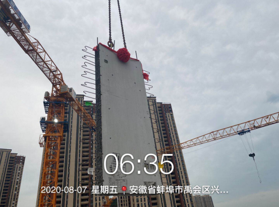 2020年8月7日,首批預制裝配式豎向構件順利到達蚌埠山香安置房項目現場項目管理人員對吊裝前準備工作進行排查確認無誤,隨著“起吊”一聲令下,塔吊緩緩將首塊墻板提整個起吊和安裝過程便捷順利,且安裝后平整度、垂直度均達到預期效果。項目技術人員對吊裝全過程及時記錄,為公司后續裝配式建筑的建造提供了第一手詳細數據。