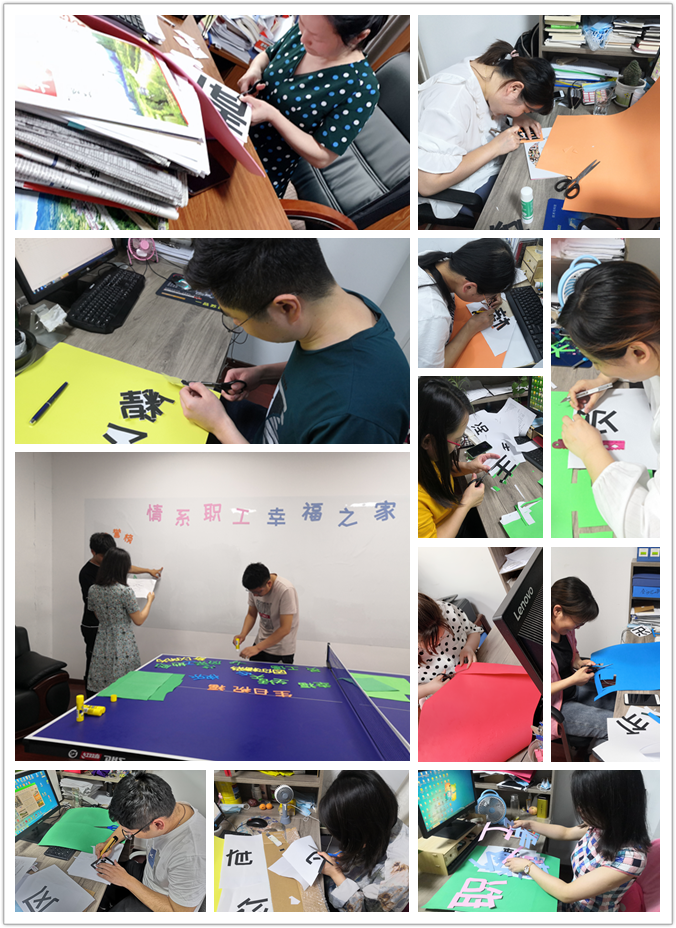 “你看我剪的就是這么完美”“對喲,你就是如此優秀”,分公司機關全體員工齊動員,相互協作,互相配合,你裁我剪,你剪我貼,在跳動的文字中談工作、談理想,其樂融融,現場呈一片祥和之氣。當成果呈現,大家看著布置好的職工之家,滿眼都是成就的喜悅,臉上露出了愉快的笑容。