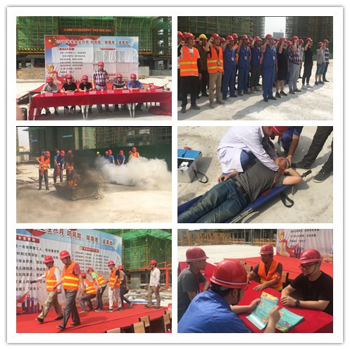 6月5日,臨泉匯鑫悅瀾灣項目組織開展了現場應急救援演練及消防演練活動。炎炎烈日下,由分公司相關領導主持,各科室負責人,項目管理人員及施工人員積極參與,通過實際演練,使現場人員學會了正確使用滅火器等消防器材,并提高了現場管理人員及施工人員的應急處理能力。