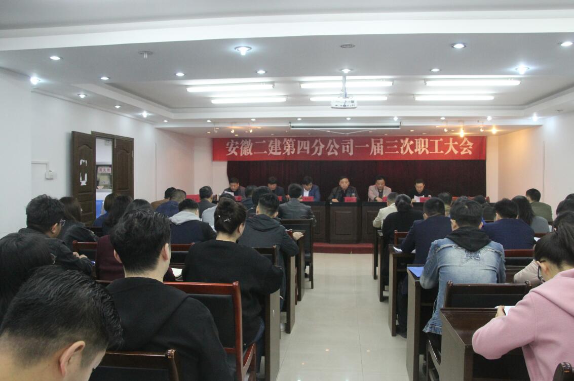 3月22日上午,安徽二建第四分公司順利召開了一屆三次職工大會,公司黨委副書記、紀委書記仇多維,總經理助理、工會副主席蒯家江,黨委工作部主任施用宏到會指導,分公司52名職工參會,支部書記董建民主持大會。