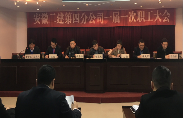 乘風破浪推發展,勠力同行齊奮進。為加快轉型升級步伐,優化內部管理機制,客觀分析當前四分公司面臨的形勢,認真學習貫徹落實安徽二建公司十五屆四次職代會精神,凝心聚力抓好2017年度各項工作,3月20日上午,安徽二建四分公司一屆一次職工大會在三樓會議室隆重召開。公司總工程師邱立龍、紀委書記仇多維、女工主任王俊以及四分公司職工近40人參加了會議。