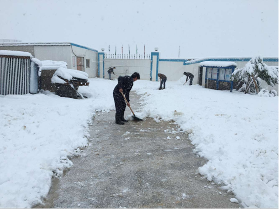 近日,阿爾及利亞康斯坦丁接連下了幾場大雪,雪花翩躚飛舞,康斯坦丁大地一片銀裝素裹。為了防止路面結冰,方便人員出行,1月19日早晨,在項目部經理章恒旭的帶領下,康斯坦丁6000套項目部全體管理人員頂風冒雪、齊心協力上路清理項目部院內及道路積雪。