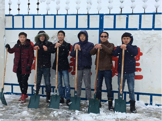 寒風陣陣,雪花飄飄,厚厚的積雪讓人步履艱難,但這并沒有阻擋隊伍的鏟雪進度,每一鍬、每一鏟,都凝結大家的付出和努力。經過奮戰,道路,院內積雪都被清掃干凈,確保了道路暢通和人員安全,極大的方便了項目全體人員的出行,項目建設進度得以正常推進。