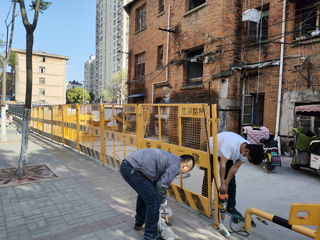 目前疫情防控形勢嚴峻,4月8日接合肥市疫情防控通知,要求各轄區內“三無”小區實行臨時封閉管理。由于公司居民住宅小區交通出入口較多,防控難度較大,為了更好地協助轄區政府實施封閉式管理,公司積極響應號召,落實后勤綜合服務部牽頭,機械分公司全力支持配合,抽調施工人員、調遣防護設施前往小區各出入口安裝圍擋,進行臨時封閉,經過努力圓滿完成了建設任務。