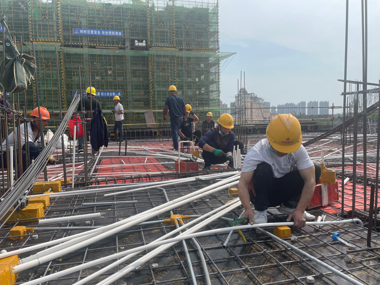 蚌埠市因疫情封城,項目管理人員面對工期緊、任務(wù)重的嚴峻形勢,為將目標節(jié)點抓緊、抓實,以“起步就是沖刺”的大干姿態(tài),堅守施工一線,搶抓工期進度,主動聯(lián)系溝通當?shù)胤酪咿k及住建局等建設(shè)主管部門,克服重重困難,組織人、材、機進場,確保工程進度平穩(wěn)推進。