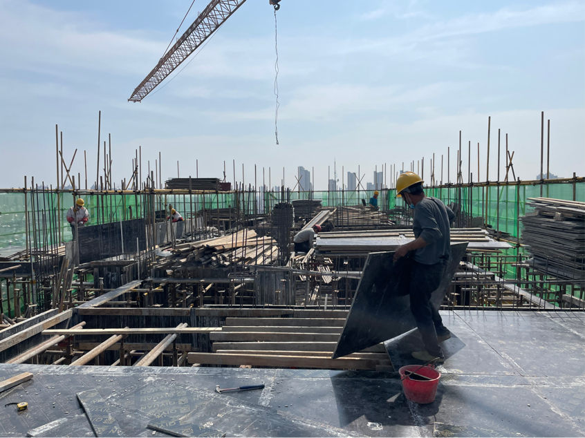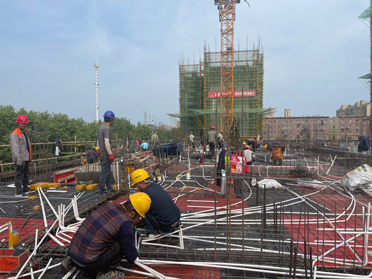 各主樓拔地而起,各單體結(jié)構(gòu)以五天一層的澆筑速度穩(wěn)步攀升。隨著6#、9#、10#的封頂,施工現(xiàn)場也正式進入二次結(jié)構(gòu)施工階段。土方開挖、混凝土澆筑、屋面構(gòu)架施工、墻體砌筑有序穿插施工,一臺臺施工升降機的安裝,猶如雨后春筍破土而出、鏗鏘有力,施工現(xiàn)場又掀起一輪新的大干熱潮。