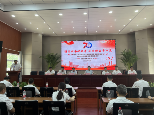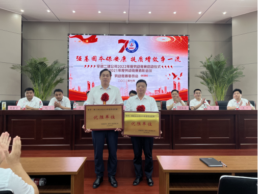 7月7日上午,安徽二建公司舉行了“強基固本保安康 提質(zhì)增效爭一流”2022年勞動競賽啟動儀式暨2021年度勞動競賽表彰會議。公司領導出席會議,勞動競賽委員會成員、所屬各單位主要領導、分管生產(chǎn)及質(zhì)量副經(jīng)理、工會主席、工程管理科、安全科全體人員、參賽項目經(jīng)理代表等共80余人參會。會議由黨委副書記、工會主席王軍主持。