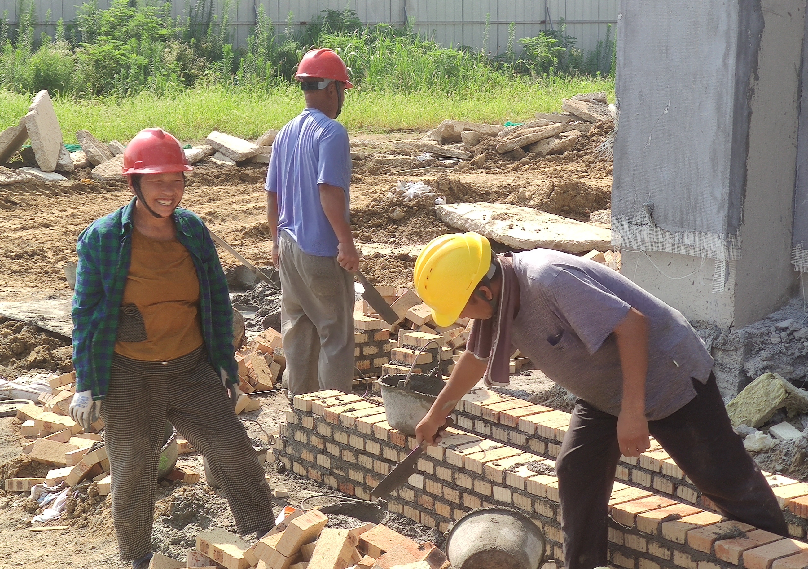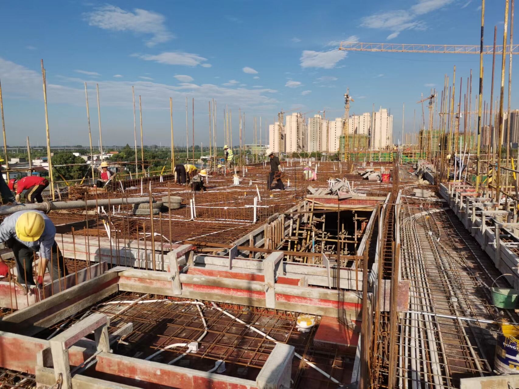工人們奮戰(zhàn)在施工一線,汗水浸濕了他們的衣衫