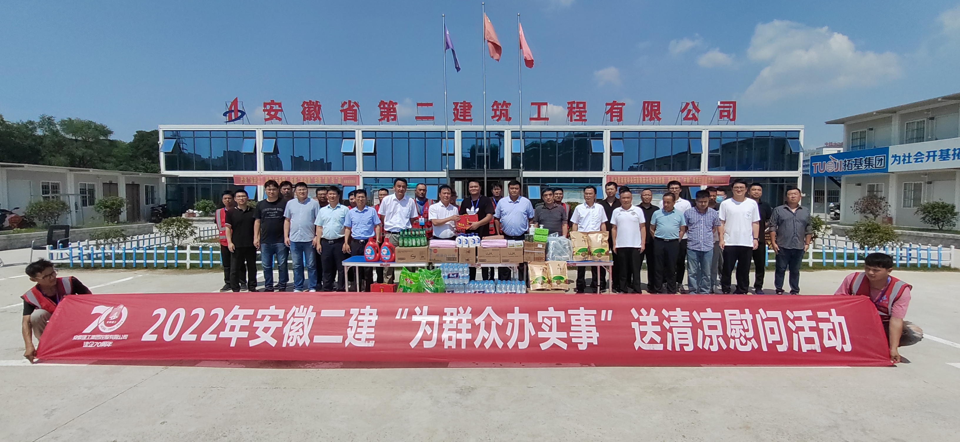 為做好高溫季節(jié)防暑降溫工作,切實(shí)維護(hù)職工安全健康權(quán)益,深入推進(jìn)“我為群眾辦實(shí)事”活動(dòng),體現(xiàn)公司對(duì)項(xiàng)目部一線廣大職工的關(guān)心、關(guān)愛,7月13日起,安徽二建公司領(lǐng)導(dǎo)班子成員陸續(xù)帶隊(duì)深入項(xiàng)目一線,開展“送清涼”活動(dòng),發(fā)放防暑降溫物品,看望、慰問奮戰(zhàn)在生產(chǎn)一線的項(xiàng)目職工。