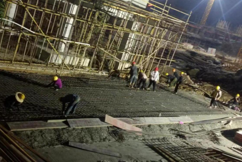 宿徐產業園消防站綜合樓基槽夜間墊層澆筑