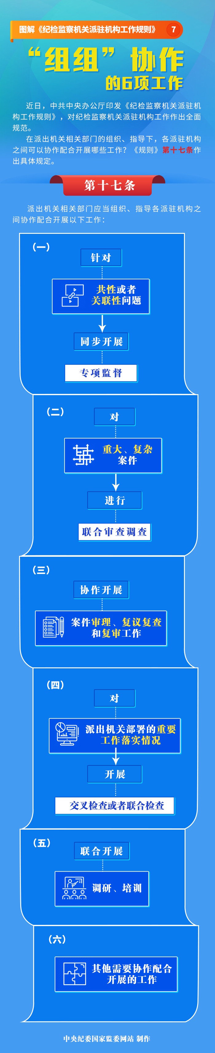 第十七條 派出機關相關部門應當組織、指導各派駐機構(gòu)之間協(xié)作配合開展以下工作: