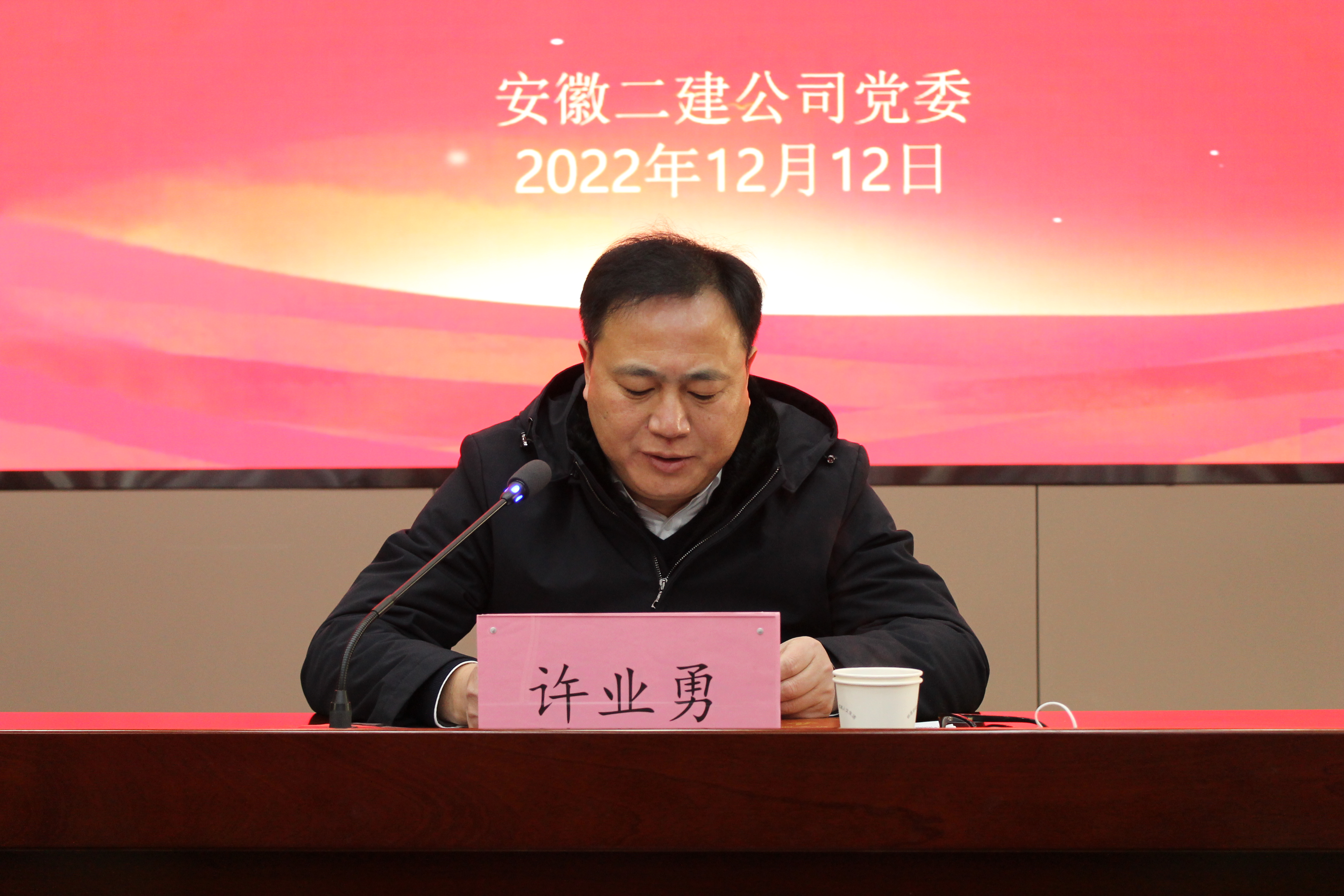 許業勇指出,舉辦此次培訓班,旨在全面貫徹落實黨的二十大精神,扎實推動高質量發展,著力增強中層管理人員及年輕干部履職能力,特別是增強工作的積極性、主動性、創造性,以及辦事效率和解決問題的能力,激發廣大干部干事創業、創先爭優的熱情,切實增強政治判斷力、政治領悟力、政治執行力,推動公司各項工作再上新臺階,為安徽二建高質量發展貢獻更大力量。他強調,一是筑牢理想信念根基。要認真學習領悟貫徹黨的二十大精神,要在深學細悟、真懂真信中汲取力量,不斷提高化解矛盾、破解難題的能力,努力把學習成果轉化為推動公司發展的強勁動力。二是強化貫徹落實,以實干實績檢驗培訓成效。統一思想、凝聚共識,打好年末“收官戰”。三是發揮表率作用,做到融匯貫通。要守土有責、守土盡責,特別是面對困難大、任務重的工作時,要迎難而上,挺身而出,充分發揮模范帶頭作用。